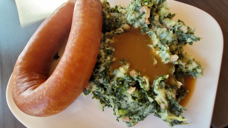 | 8 | Stamp de aardappelen en boerenkool fijn en voeg de room toe |