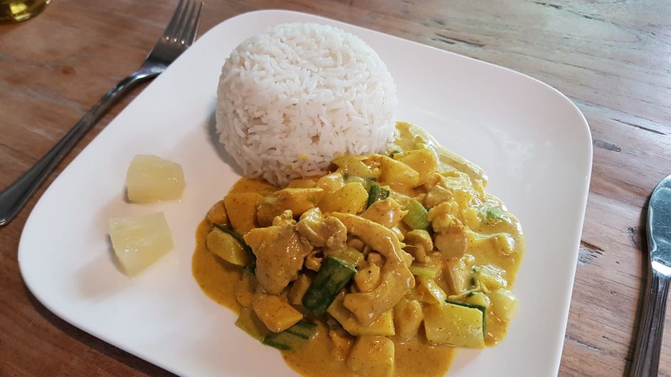 | 9 | Voeg 300 ml water en het kerriepoeder toe |