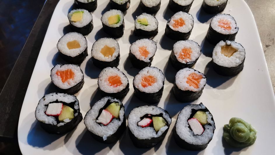 | 18 | Serveer de sushi maki met wasabi, sojasaus en eventueel de ingelegde gember |